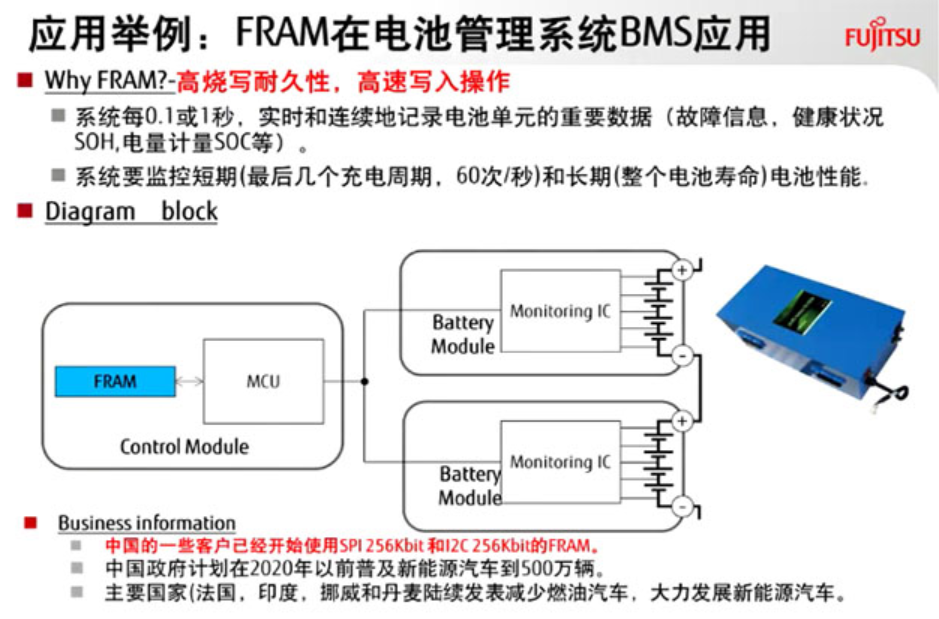 FRAM高耐久(可擦寫10萬億次)的特性,剛好滿足BMS等關鍵型應用對存儲器的優異性能與穩定可靠的需求。