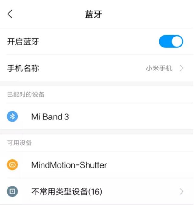 2. 選擇對應名稱(MindMotion-Shutter)的藍牙設備并進行配對。