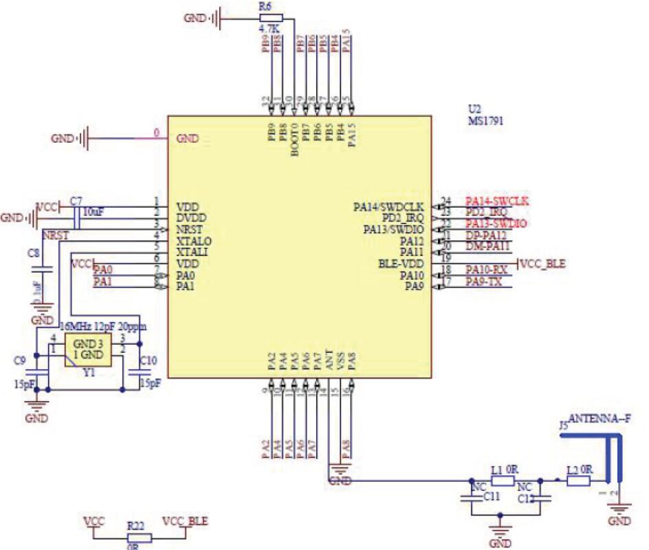 上海巨微MS1791是單模超低功耗藍(lán)牙芯片,射頻采用的是2.4GHzISM頻段的頻率,2MHz信道間隔,符合藍(lán)牙核心規(guī)范4.1。MS1791使用高性能的ARM Cortex-M0為內(nèi)核的32位微控制器,最高工作頻率可達(dá)48MHz,內(nèi)置高速存儲(chǔ)器,豐富的增強(qiáng)型I/O端口和外設(shè)連接到AHB和APB總線。