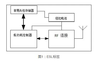 結(jié)構(gòu)最簡(jiǎn)單的ESL由一個(gè)LCD或電子、RF模塊、墨水顯示屏、配套處理器、紐扣電池和低引腳數(shù)存儲(chǔ)器(易失性和非易失性存儲(chǔ)器)構(gòu)成。可以根據(jù)需求功能的不同,將所需要的價(jià)格走向,購(gòu)買走向和當(dāng)前庫(kù)存信息存儲(chǔ)在ESL中,待一天結(jié)束刷新中央服務(wù)器的數(shù)據(jù)。如果要實(shí)現(xiàn)用一顆小紐扣電池供電并維持?jǐn)?shù)幾年的工作機(jī)能需要讓整個(gè)系統(tǒng)使用一個(gè)低功耗控制器和存儲(chǔ)器。基于內(nèi)置的連接選項(xiàng)(通常是BLE或Wi-Fi),板載存儲(chǔ)器可兼作協(xié)議棧存儲(chǔ)空間,繞過(guò)商場(chǎng)的中央服務(wù)器,直接連接用戶手機(jī)。